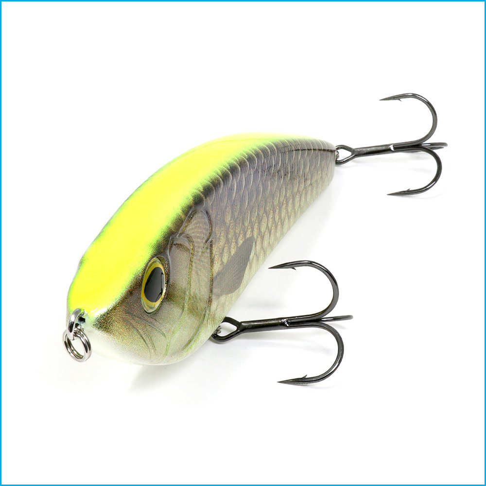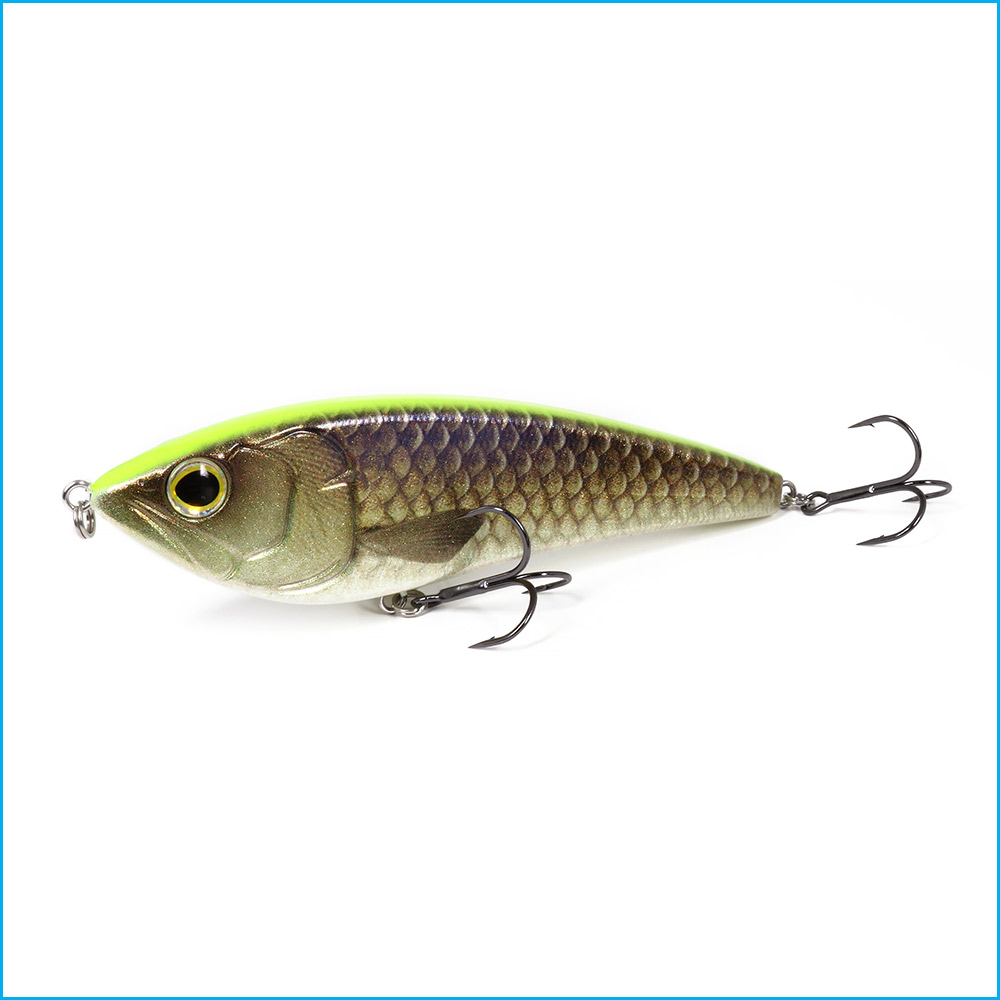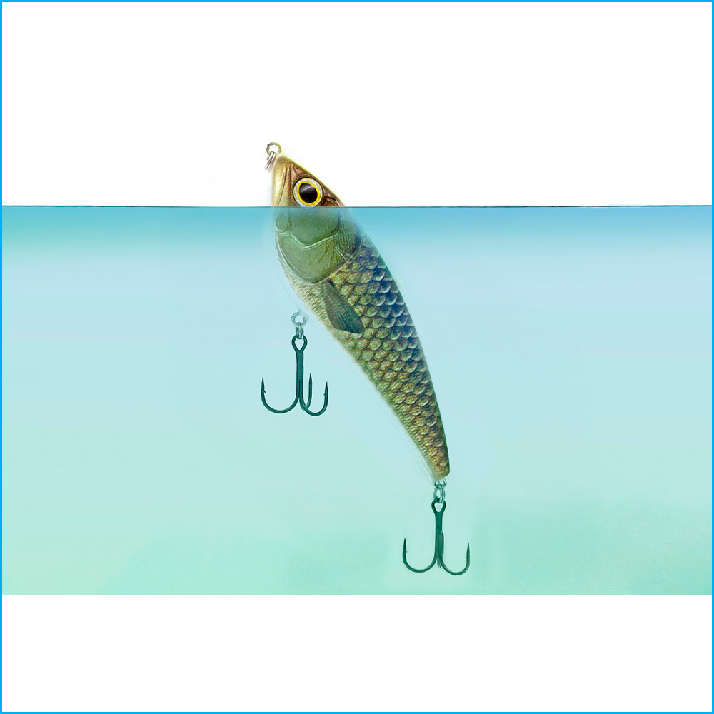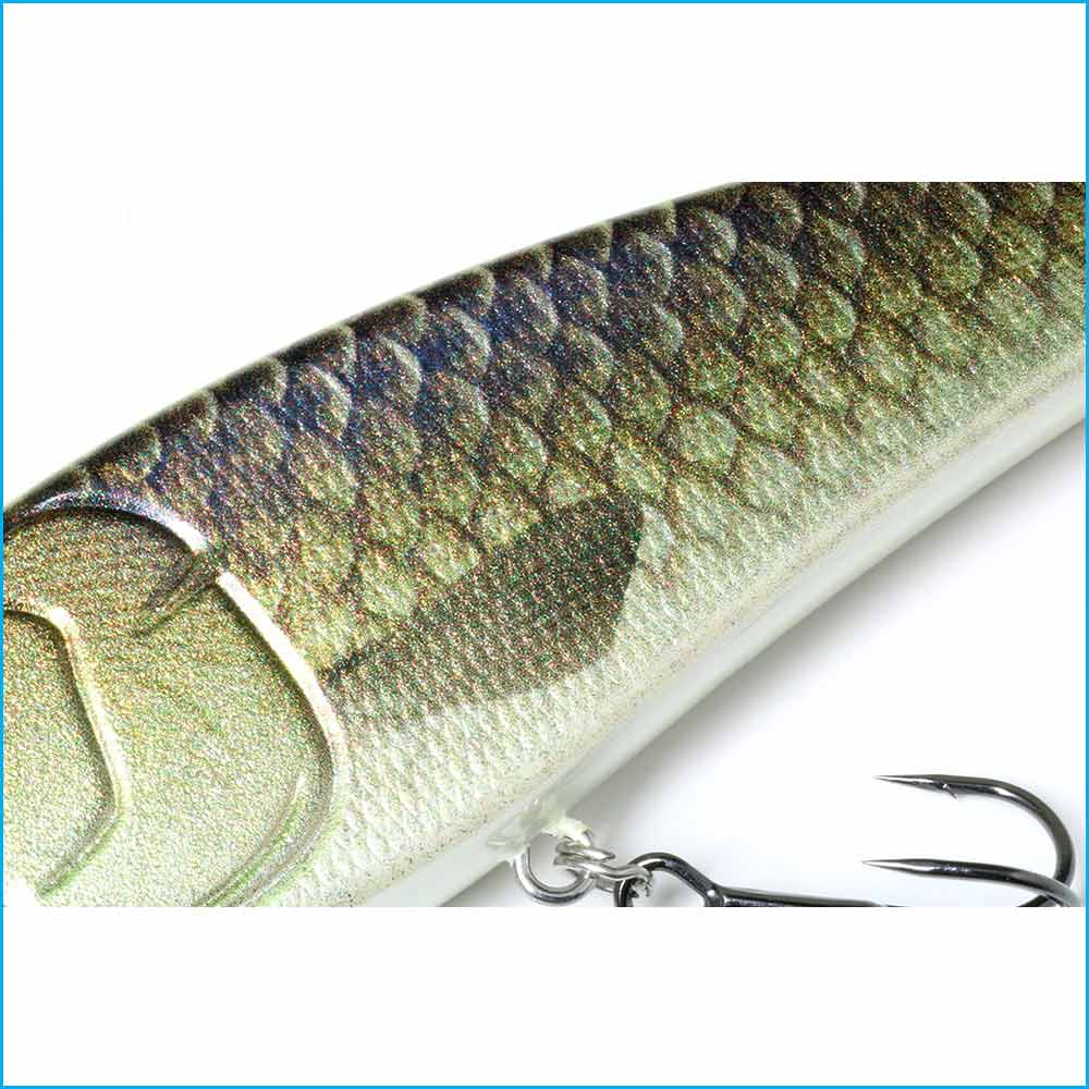 Los laterales planos del señuelo atrapan el agua, algo que le proporciona una acción de dardo nítida, consiguiendo un amplio deslizamiento lateral, lo que provoca una acción vivaz.